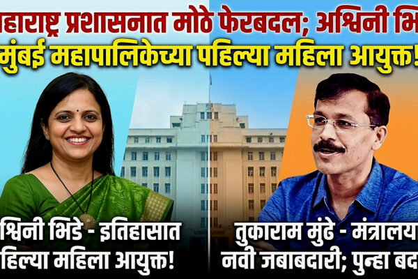 तुकाराम मुंढे यांची पुन्हा बदली; महाराष्ट्र प्रशासनात मोठे फेरबदल! अश्विनी भिडे पहिल्या महिला आयुक्त