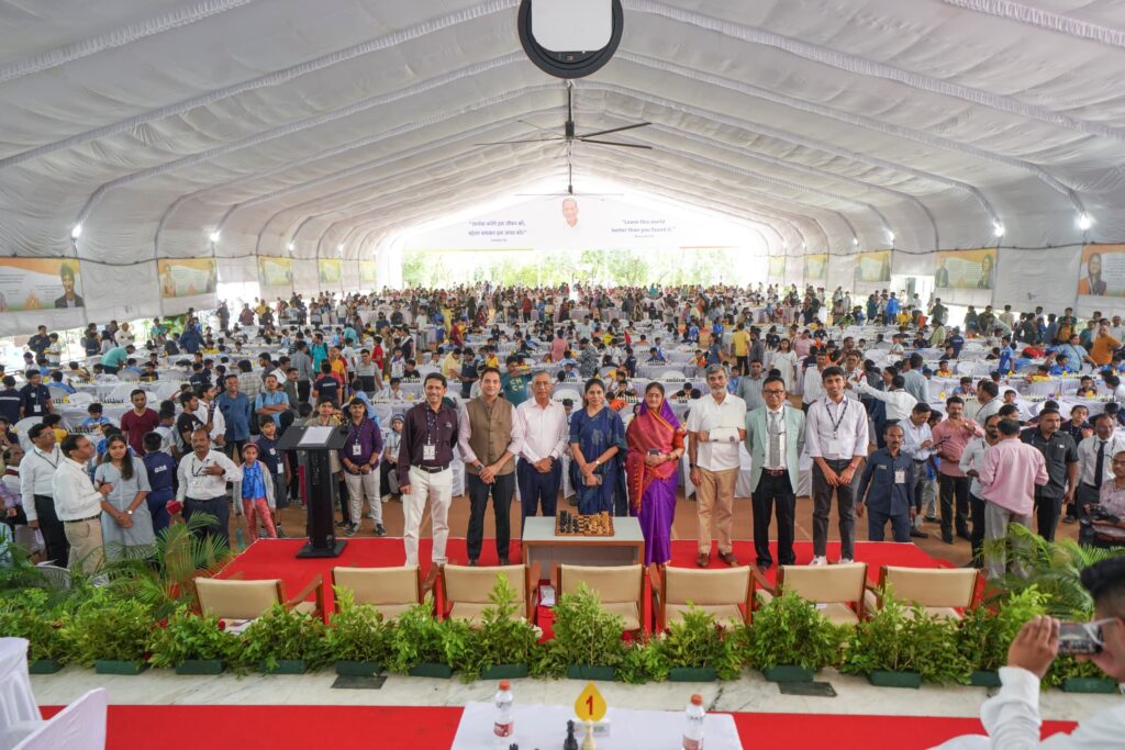 अनुभूती मंडपममध्ये दि.२ ते ८ ऑगस्ट २०२५ दरम्यान स्वीग लीग मध्ये खेळविण्यात येणाऱ्या ११ वर्षाखालील मुला-मुलींच्या या बुद्धिबळ महासंग्रामाचे उद्घाटन रक्षा खडसे व स्मिता वाघ यांनी बुद्धिबळाच्या पटावर मोहरा चालवून (सेरीमोनियल मूव्ह) केली. सुरवातीला मान्यवरांच्या उपस्थित दीपप्रज्वलन झाले. चिमुकला वल्लभ अमोल कुलकर्णी सोबत रक्षा खडसे यांनी बुद्धिबळ पटावर मोहरांच्या चाली खेळल्यात. यानंतर महाराष्ट्र बुद्धिबळ असोसिएशनच्या वार्षिक अहवालाचे प्रकाशन उपस्थित मान्यवरांच्या हस्ते झाले.