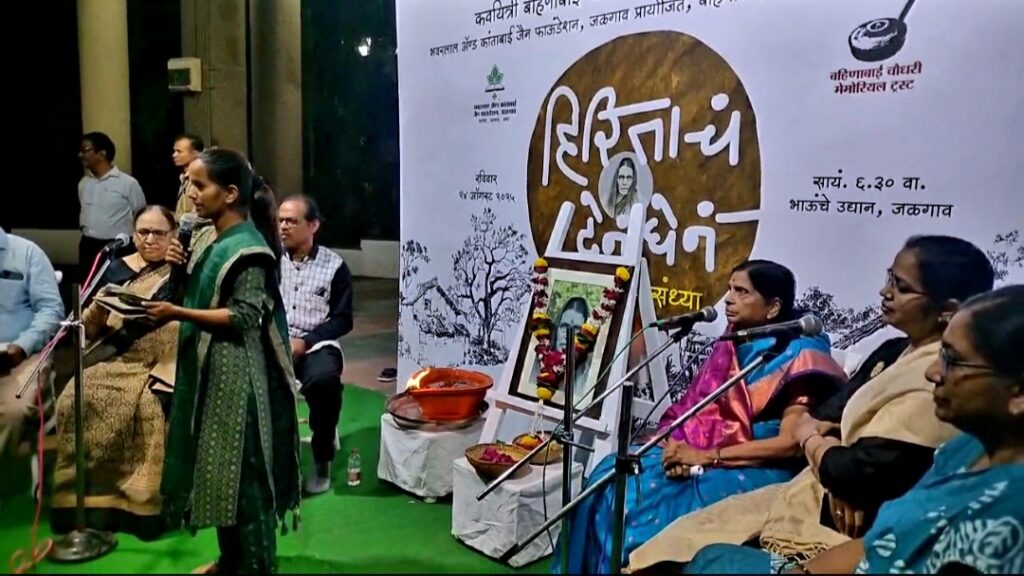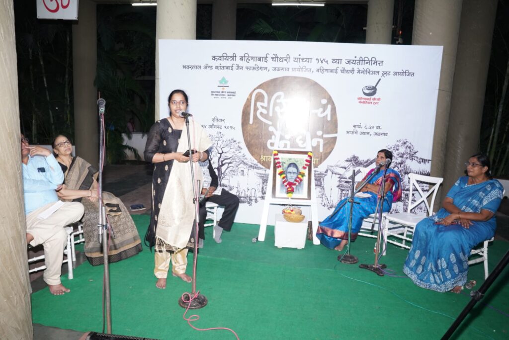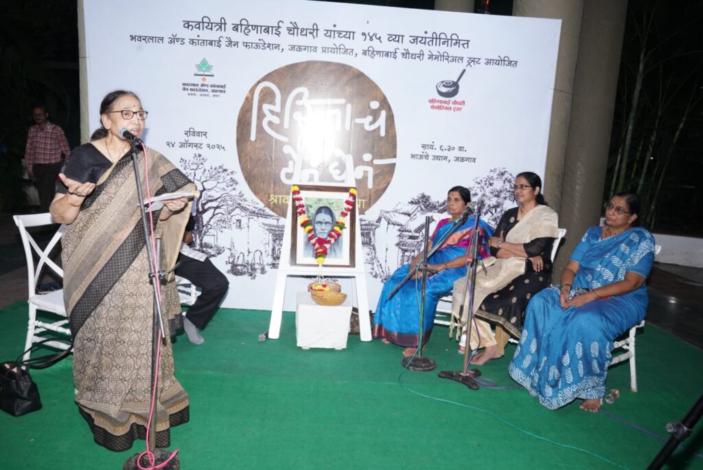 बहिणाबाई चौधरी मेमोरियल ट्रस्ट व भवरलाल ॲण्ड कांताबाई जैन फाऊंडेशनच्या वतीने कवयित्री बहिणाबाई चौधरी यांच्या १४५ व्या जयंतीनिमित्त ‘हिरिताचं देनं घेनं’ या विशेष कार्यक्रमाचे आयोजन केले होते. ही श्रावण काव्यसंध्या भाऊंचे उद्यान येथे संपन्न झाली.