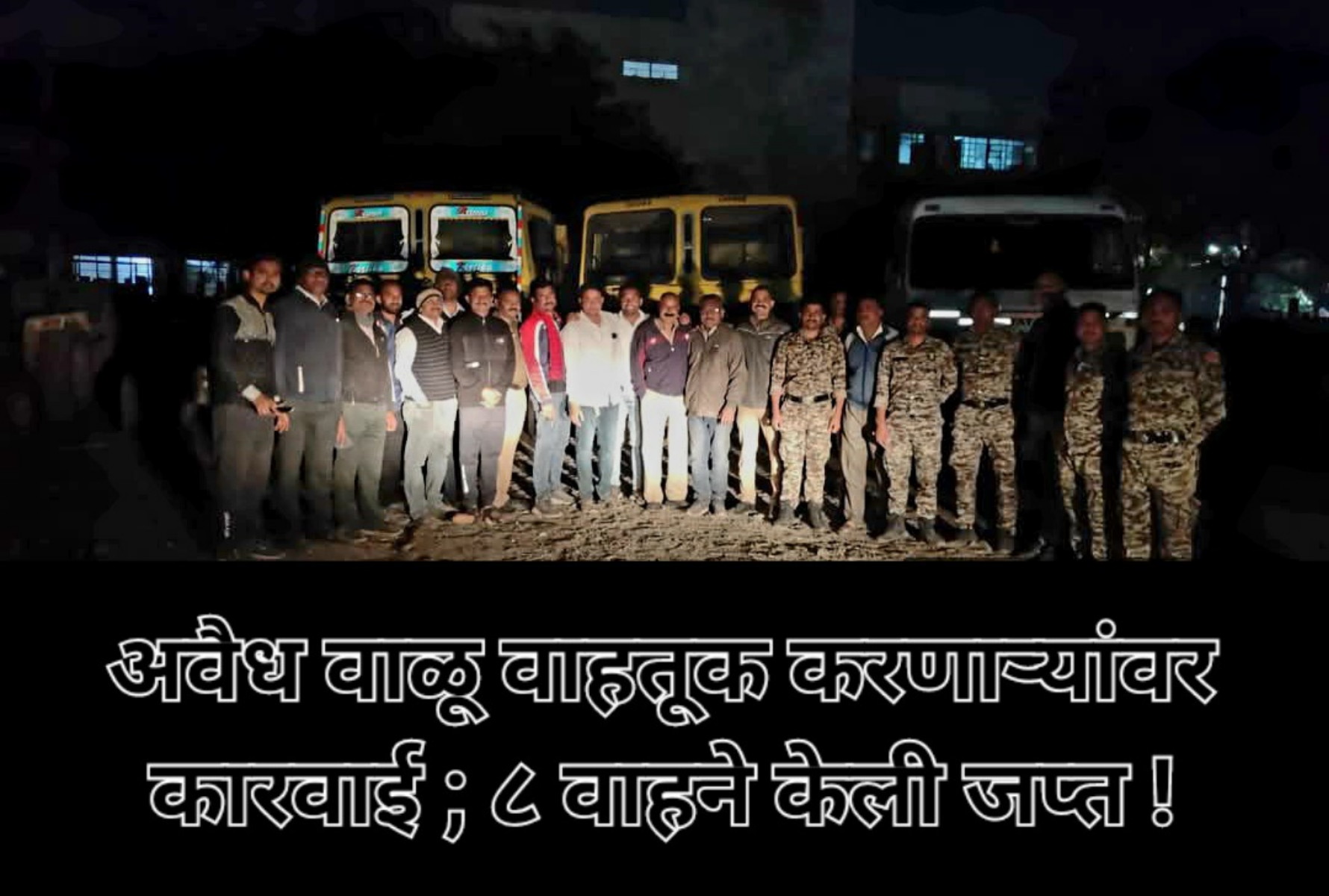 अवैध वाळू वाहतूक करणाऱ्यांवर कारवाई ; ८ वाहने केली जप्त !