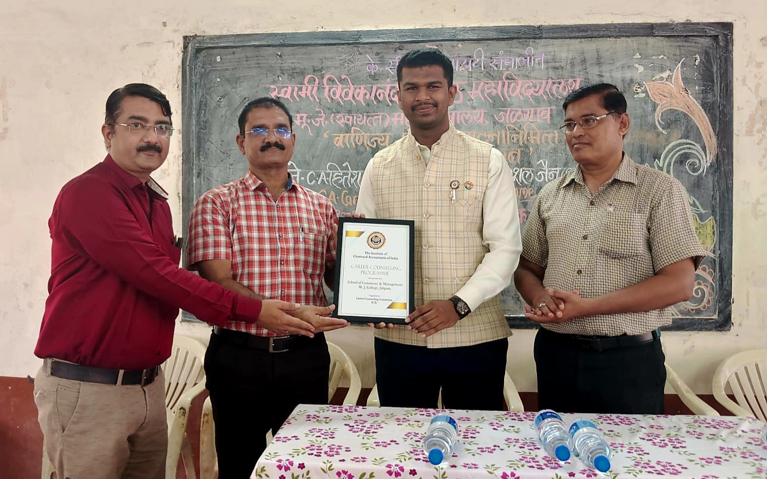 द इन्स्टिट्यूट ऑफ चार्टर्ड अकाउंटंट इन इंडिया, जळगाव येथील विनोद जाधव तसेच वाणिज्य शाखेचे विद्यार्थी मोठ्या संख्येने उपस्थित होते. कार्यक्रमाच्या अध्यक्षस्थानी कनिष्ठ महाविद्यालयाचे पर्यवेक्षक प्रा. आर.बी. ठाकरे हे होते. व कला आणि वाणिज्य विद्या शाखांचे समन्वयक प्रा.उमेश पाटील व वाणिज्य मंडळ अध्यक्ष प्रा.प्रसाद देसाई हे उपस्थित होते.