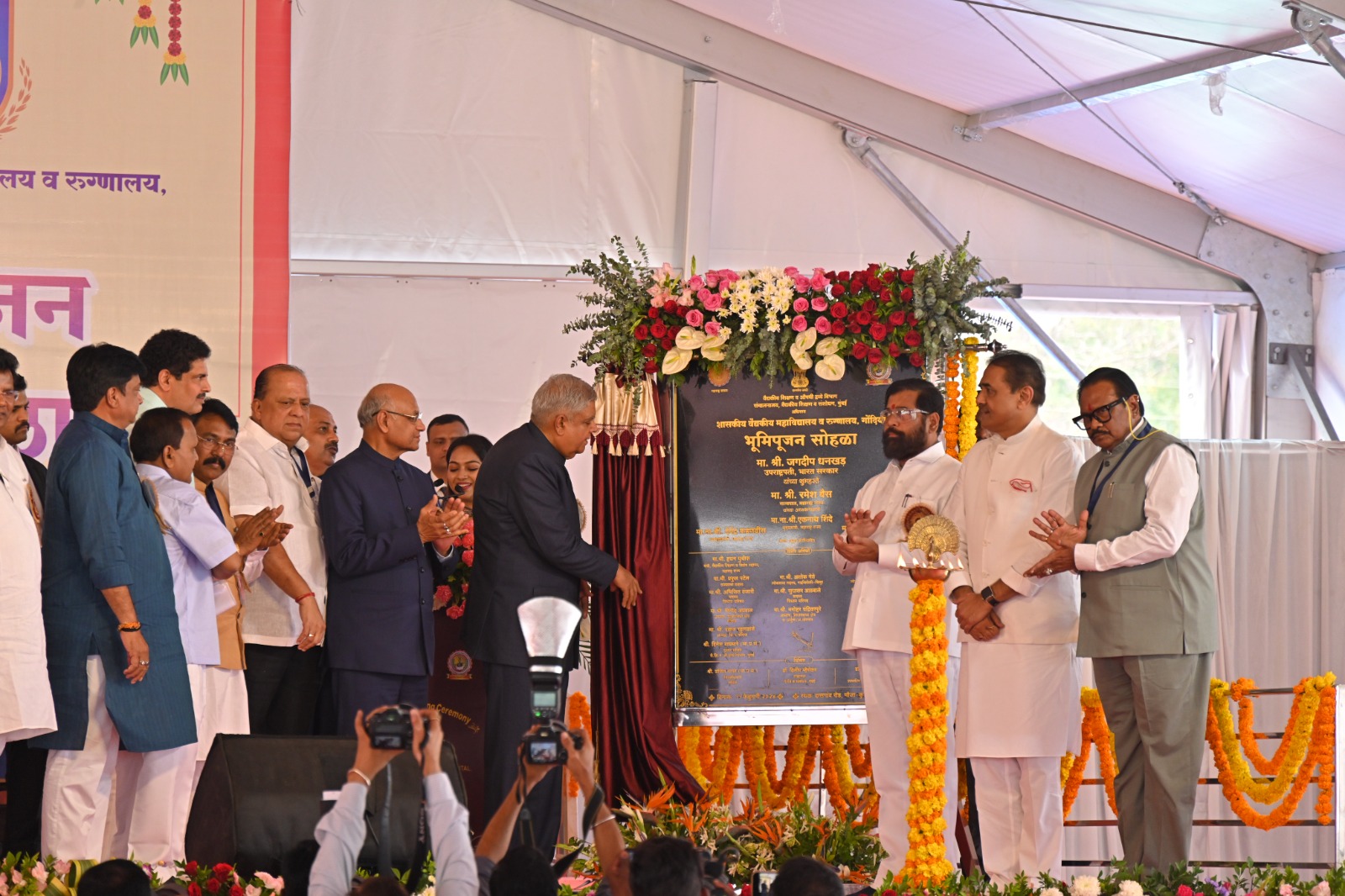 उपराष्ट्रपती जगदीप धनखड यांच्या हस्ते आणि राज्यपाल रमेश बैस, मुख्यमंत्री एकनाथ शिंदे यांच्या प्रमुख उपस्थितीत आज गोंदिया शासकीय वैद्यकीय महाविद्यालयाच्या नव्या वास्तूचे भूमिपूजन करण्यात आले. याप्रसंगी पालकमंत्री धर्मरावबाबा आत्राम, वैद्यकीय शिक्षणमंत्री हसन मुश्रीफ, खासदार सर्वश्री प्रफुल्ल पटेल, सुनील मेंढे, डॉ. सी. एम. रमेश, डॉ. श्रीकांत शिंदे आदी मान्यवर उपस्थित होते.