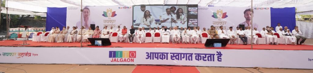 जळगाव येथे जितो तर्फे आयोजित सर्व धर्मीय बंधू-भगिनींसाठी विश्व नवकार महासंमेलनामध्ये दिल्ली येथील विज्ञानभवनातून ऑनलाईन पंतप्रधान नरेंद्र मोदींनी सहभाग नोंदविला. ‘विश्व कल्याणासाठी एकत्र येऊया आणि नवकार महामंत्राचा सामूहिक जप करून शांती आणि सद्भावनेचा संदेश देऊया !’ या उद्देशाने विश्वशांतीसाठी सामुदायिक नवकार महामंत्र जप जळगावातील ८१ हजार जणांनी एकाच वेळी केला. यात जैन इरिगेशन सिस्टीम्स लि. व जैन फार्मफ्रेश फूडस् लि. कंपनीने संस्थात्मक स्तरावर ११ हजार सदस्यांची नोंदणी केली होती. जळगावस्थित मुख्य आस्थापनांमधील सहकाऱ्यांनी सामुदायिक नवकार मंत्राचे पठण केले. एकाच वेळी १०८ देशांमध्ये आणि भारतातील ६००० ठिकाणी हा शांतीमंत्र गुंजला. जळगाव येथील कार्यक्रमात मोठ्या संख्येने सर्व धर्म बांधवांची उपस्थिती होती. यात महिला-पुरूष तसेच युवक-युवती व शाळेतील विद्यार्थी देखील सहभागी झाले होते.