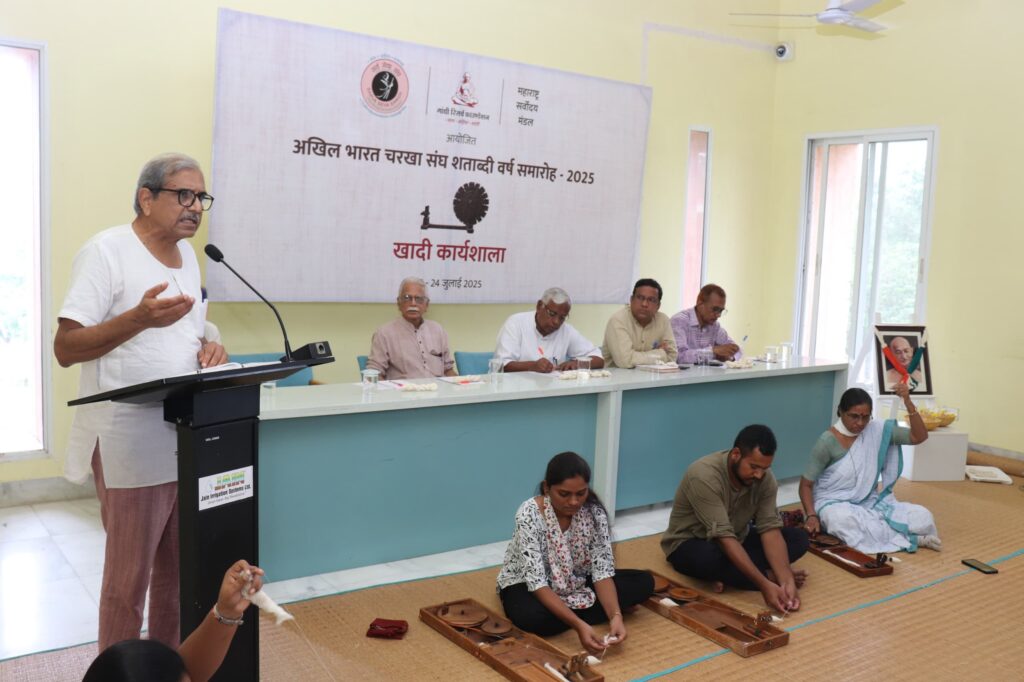 कार्यक्रमाचे संचालन महाराष्ट्र सर्वोदय मंडळाचे अध्यक्ष रमेश दाणे यांनी केले. त्यांनी गांधीवादी चळवळीच्या दिशेने चरखा संघाच्या प्रयत्नांचे थोडक्यात वर्णन देखील सादर केले. सर्व सेवा संघाचे व्यवस्थापकीय विश्वस्त शेख हुसेन यांनी आभार मानले. राष्ट्रगीताने सत्राचा समारोप झाला.दुसऱ्या दिवसाची रूपरेषाउद्या दि. २४ जुलै रोजी दुसऱ्या दिवशी होणाऱ्या सत्रांमध्ये चरखा चळवळीची ऐतिहासिक पार्श्वभूमी, खादीची सामाजिक-आर्थिक प्रासंगिकता आणि चरखा संघाच्या भविष्यातील कृती आराखड्यावर चर्चा होईल. महाराष्ट्रातील विविध प्रदेशातील गांधीवादी विचारवंत, खादी चळवळीशी संबंधित कार्यकर्ते आणि सामाजिक संस्थांचे प्रतिनिधी यात सहभागी होतील. या कार्यशाळेचा उद्देश केवळ चर्चा करणे नाही तर समकालीन समाजात खादी आणि चरख्याचे पुनरुज्जीवन कसे करावे यासाठी ठोस कृती आराखडा तयार करणे देखील आहे.
