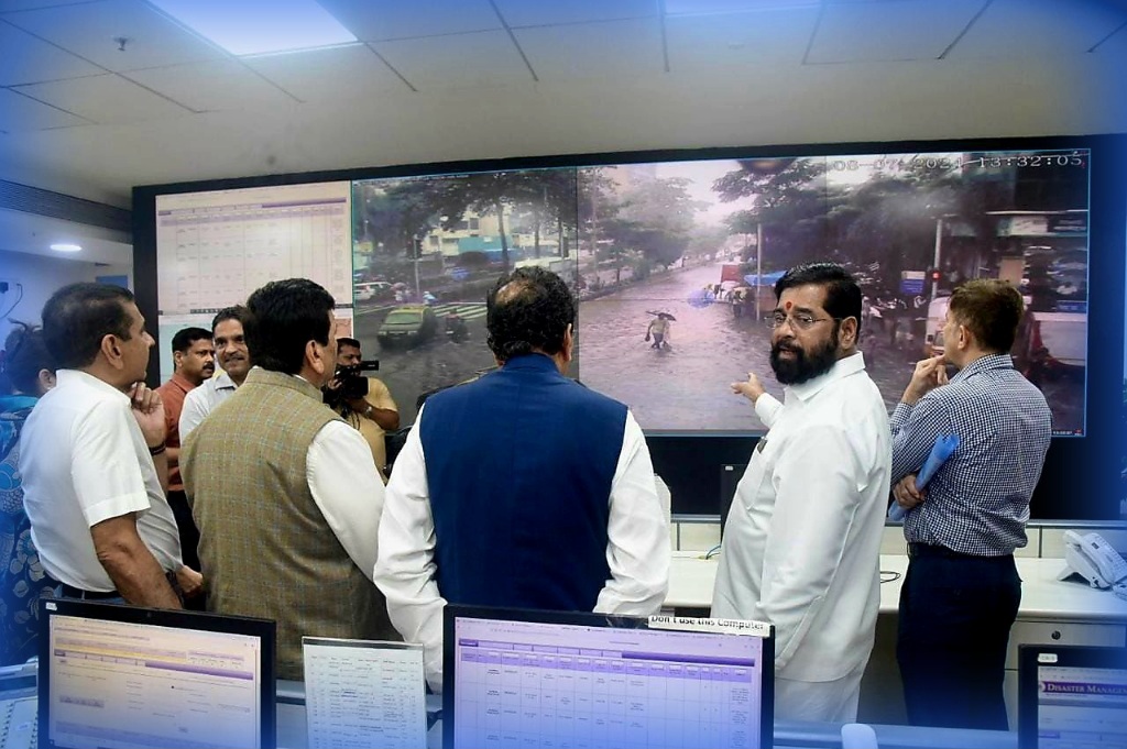 मिठी नदीच्या ठिकाणी फ्लड गेट बसविण्यात येत असून त्यामुळे भरतीच्या वेळेस समुद्राचे पाणी शहरात येणार नाही. पंपाने साचलेले पाणी समुद्रात टाकण्याची यंत्रणा करण्यात येत आहे. मुंबईत सात ठिकाणी पंपिंग स्टेशन करण्यात येत असून नागरिकांना मदतीसाठी यंत्रणा सज्ज असल्याचे यावेळी मुख्यमंत्री एकनाथ शिंदे यांनी सांगितले.