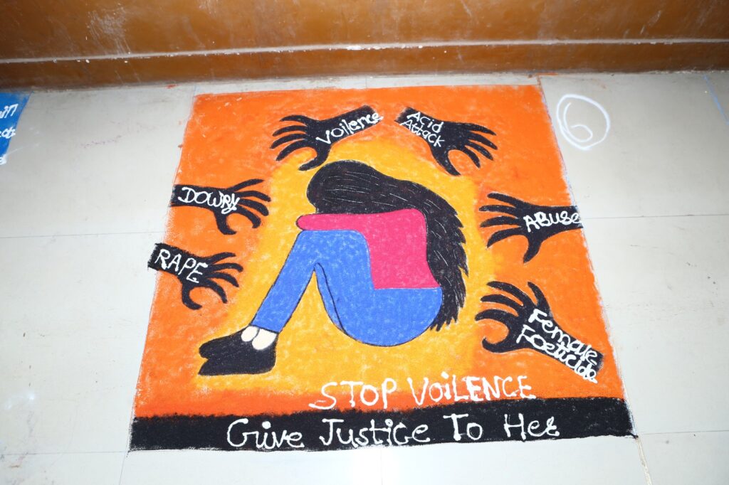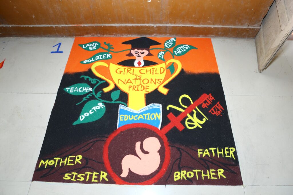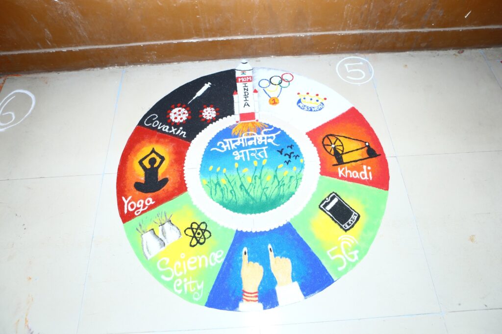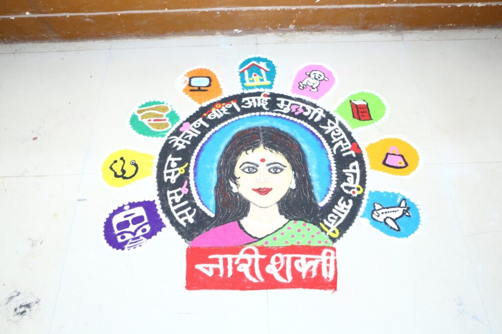विविध छंद व प्रदर्शन या स्पर्धेत विद्यार्थ्यांनी नारी शक्ती, स्त्री भ्रूण हत्या, आत्मनिर्भर भारत, विषयांवरील रांगोळ्या लक्ष वेधून घेणाऱ्या होत्या.