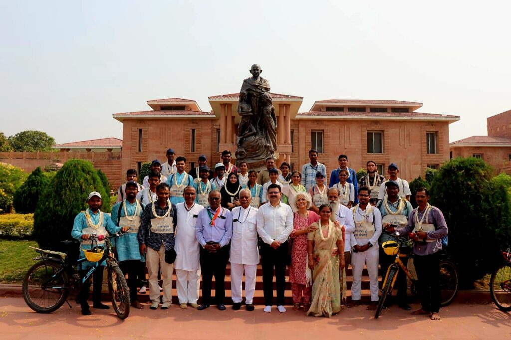 सर्व सहभागी सायकल यात्रींना मान्यवरांच्या हस्ते प्रशस्तिपत्रके वितरित करण्यात आली. डॉ. अश्विन झाला यांनी आभार मानले तर गिरीश कुळकर्णी यांनी सूत्र संचालन केले. कार्यक्रमास दीपक मिश्रा, चंद्रकांत चौधरी, विक्रम अस्वार, सागर टेकावडे, अजय वंडोळे, ज्योती सोनवणे, विश्वजित पाटील, ऐश्वर्या तांबे, सुशीला बेठेकर, नेहा पावरा, प्राजक्ता ढगे, शिवम राठोड, उमेश गुरमुले, रोशिनी (मणिपूर), विनोद पाटील, शिवाजी मराठे या सायकल यात्रींसह गांधी रिसर्च फाउंडेशनचे सहकारी उपस्थित होते.