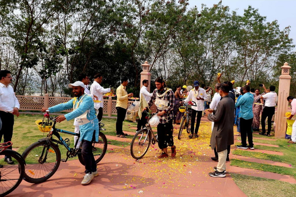 कार्यक्रमाची सुरुवात प्रशांत सूर्यवंशी यांच्या गीताने झाली. मान्यवरांच्या हस्ते महात्मा गांधीजींच्या प्रतिमेस माल्यार्पण करण्यात आले. शुभम खरे, डॉ. निर्मला झाला, यश मानेकर, गायत्री कदम व सत्येन्द्रकुमार यांनी पॉवर पॉईंट प्रेझेंटेशनच्या माध्यमातून सायकल यात्रेच्या १२ दिवसांचा आढावा घेतला. दीप राज भट्टराइ (नेपाळ), गुलाब भडागी, प्रेमकुमार परचाके, मयूर गिरासे, नीर झाला, हाफसा हारिस, अलेक्सिस (फ्रान्स), मुकेश यादव (नेपाळ) यांनी मनोगत व्यक्त केले.