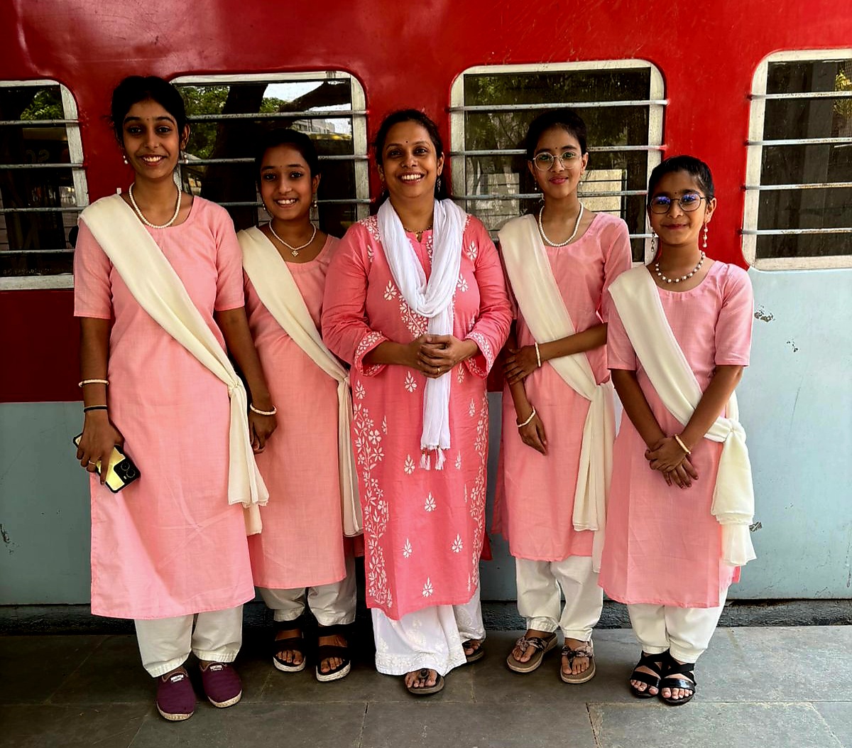 डावीकडून कनिष्का कुलकर्णी, लावण्या कुलकर्णी, गुरु नुपूर चांदोरकर-खटावकर, ओवी धानोरकर, अनघा कुलकर्णी.