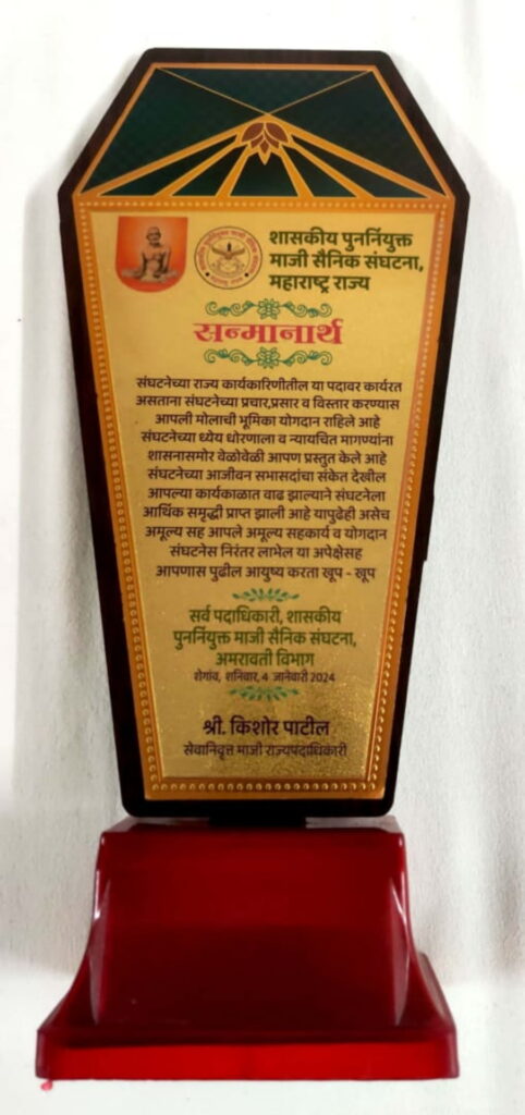 शेगाव ( वास्तव पोस्ट ) प्रतिनिधी l सुमित पाटील : शासकीय पुनर्नियुक्त माजी सैनिक संघटना,महाराष्ट्र राज्य या संघटनेचे नाशिक विभागाचे मा. विभागीय उपाध्यक्ष किशोर पाटील यांचा शेगाव येथे संघटनेच्या राज्यस्तरीय अधिवेशन तथा वार्षिक सर्वसाधारण सभेत सत्कार करण्यात आला. संघटनेच्या राज्य कार्यकारणीत कार्यरत असताना संघटनेचा प्रचार, प्रसार व विस्तार करण्यात त्यांनी मोलाची भूमिका बजावली आहे.