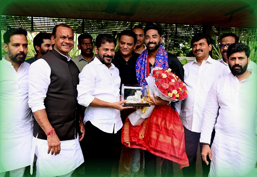 दरम्यान टी-20 वर्ल्ड चॅम्पियन मोहम्मद सिराज याने नुकतीच तेलंगणाचे मुख्यमंत्री रेवंत रेड्डी यांची भेट घेतली. यावेळी सीएम रेड्डी यांनी सिराजसाठी सरकारी नोकरी आणि भूखंड देण्याची घोषणा केली आहे. सिराजने अनेक प्रसंगी भारतीय संघासाठी चमकदार कामगिरी केली आहे. टी-20 वर्ल्डकप जिंकून भारतात परतलेल्या खेळाडूंचे जोरदार स्वागत करण्यात आले. तेलंगणाचे मुख्यमंत्री रेवंत रेड्डी यांनी मोहम्मद सिराज याची भेट घेऊन त्यांचे अभिनंदन केले. हैदराबादमध्ये घर बांधण्यासाठी सिराजला जमीन देण्याची घोषणाही करण्यात आली आहे. यावेळी सिराज याने मुख्यमंत्र्यांना टीम इंडियाची जर्सी भेट दिली.