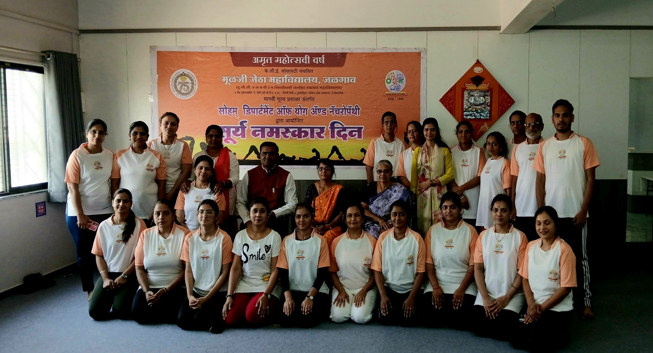 जळगाव ( वास्तव पोस्ट ) : रथसप्तमी निमित्त सूर्यनमस्कार दिनाचे आयोजन मू. जे. स्वायत्त महाविद्यालयाच्या सोहम डिपार्टमेंट ऑफ योग अँड नॅचरोपॅथी द्वारा करण्यात आले होते. या निमित्ताने सूर्य उपासनेचे महत्व पटवून देण्याच्या उद्देशाने सामूहिक सूर्यनमस्कार साधना आणि व्याख्यानाचे आयोजन मंगळवार दिनांक ४ फेब्रुवारी रोजी सोहम योग विभागात करण्यात आले.