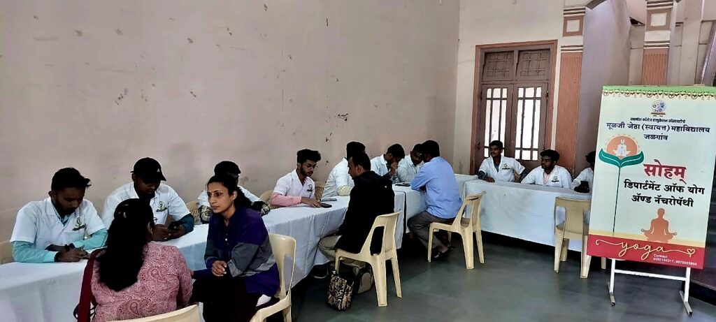 जळगाव ( वास्तव पोस्ट ) : एम.जे. कॉलेज सोहम डिपार्टमेंट ऑफ योग अँड नॅचर्रोपॅथी द्वारा प्रकृती परीक्षण अभियान अंतर्गत प्रकृती परीक्षण शिबिराचे आयोजन करण्यात आले होते. भारत सरकारच्या आयुष मंत्रालय अंतर्गत प्रकृती परीक्षण अभियान सर्वत्र राबविले जात आहे. त्याचाच एक भाग म्हणून डॉ.गुणवंतराव सरोदे आयुर्वेद मेडिकल कॉलेजचे विद्यार्थी आणि प्राध्यापक यांच्या सहकार्याने एम. जे. कॉलेजचे सोहम डिपार्टमेंट ऑफ योग अँड नॅचरोपॅथी द्वारा या शिबिराचे आयोजन करण्यात आले होते.