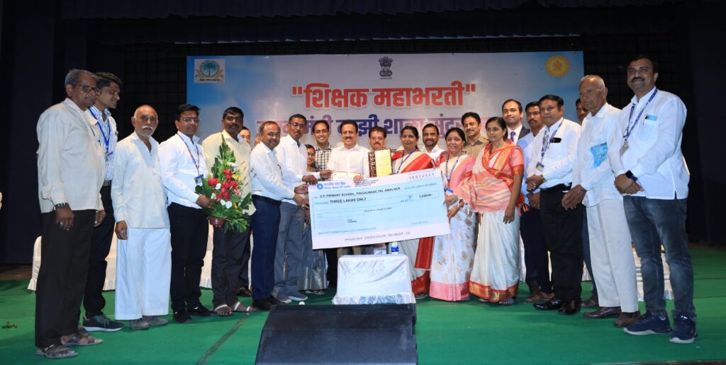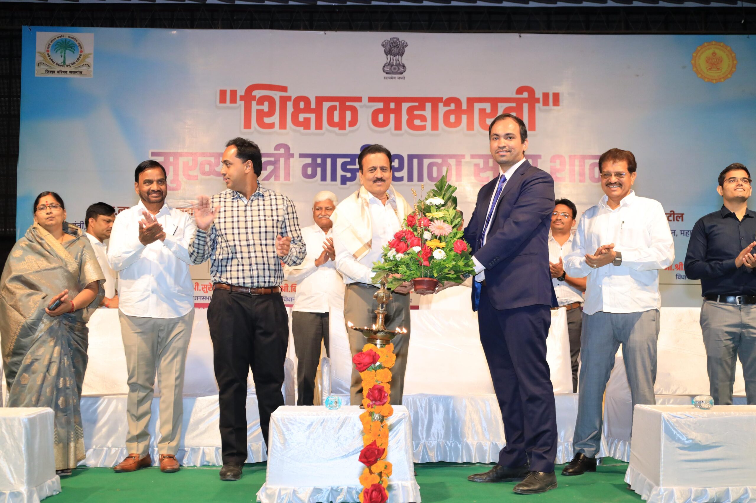 पवित्र पोर्टलच्या माध्यमातून शिक्षक महाभरती अंतर्गत निवड करण्यात आलेल्या नवनियुक्त शिक्षकांना नियुक्तीपत्र वाटप व ‘मुख्यमंत्री माझी शाळा सुंदर शाळा’ उपक्रमांतर्गत पात्र ठरलेल्या शाळांना बक्षीस वितरणाचा कार्यक्रम रविवार दिनांक १० मार्च रोजी जळगाव शहरातील संभाजी राजे नाट्यगृहात आयोजित करण्यात आला होता.