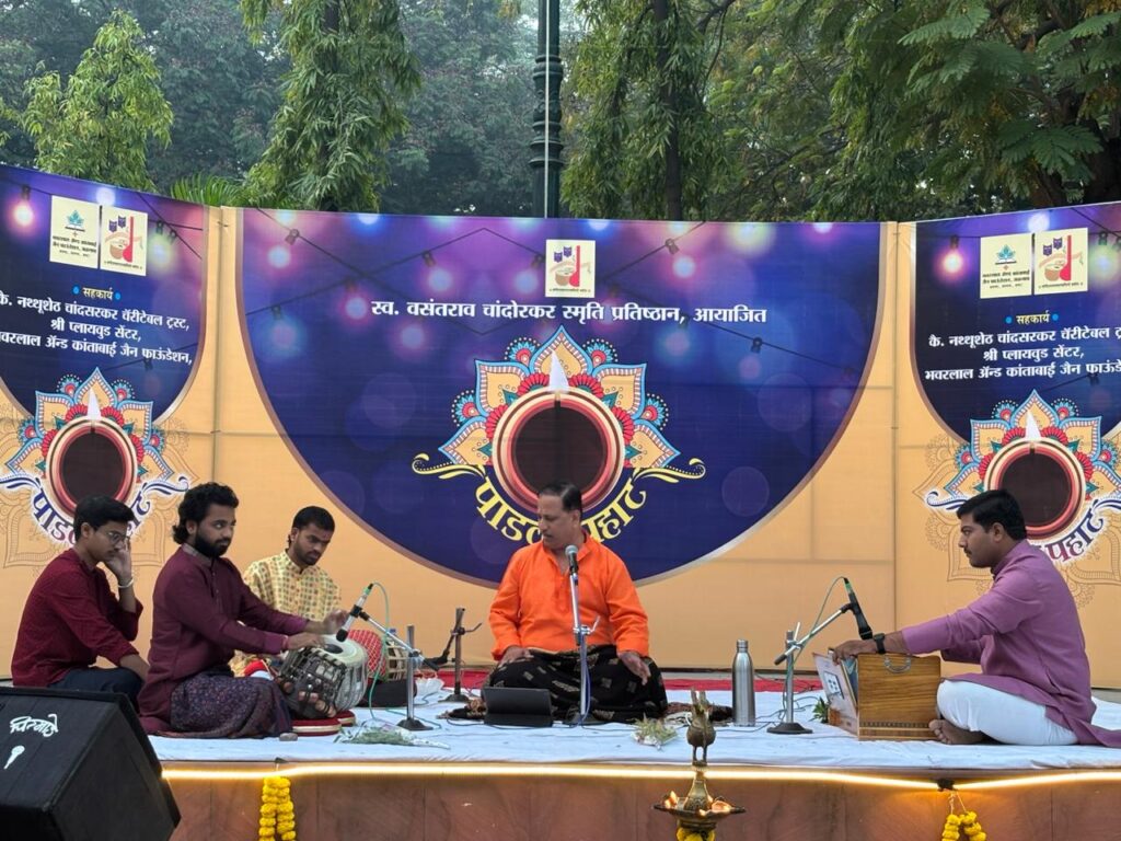 यावेळी सर्व कलाकारांचा मान्यवरांच्या हस्ते सत्कार करण्यात आला. धनंजय जोशी यांना तबल्याची संगत कार्तिक स्वामी दहिफळे, संवादिनीची साथ श्रीराम जोशी, तर पखवाजाची साथ अमोल लाकडे आणि मंजिरीची साथ प्रसन्न भुरे या युवा कलावंतांनी केली. सुरुवातीस अहिर भैरव रागातील ‘अलबेला साजन आयो रे…’ ही तीन तालातील बंदीश सादर केली. त्यानंतर त्याला जोडूनच जय जय गौरीशंकर नाटकातील ‘जय शंकरा गंगाधरा’ या नाट्यपदाने मैफिलीत रंगत भरली.