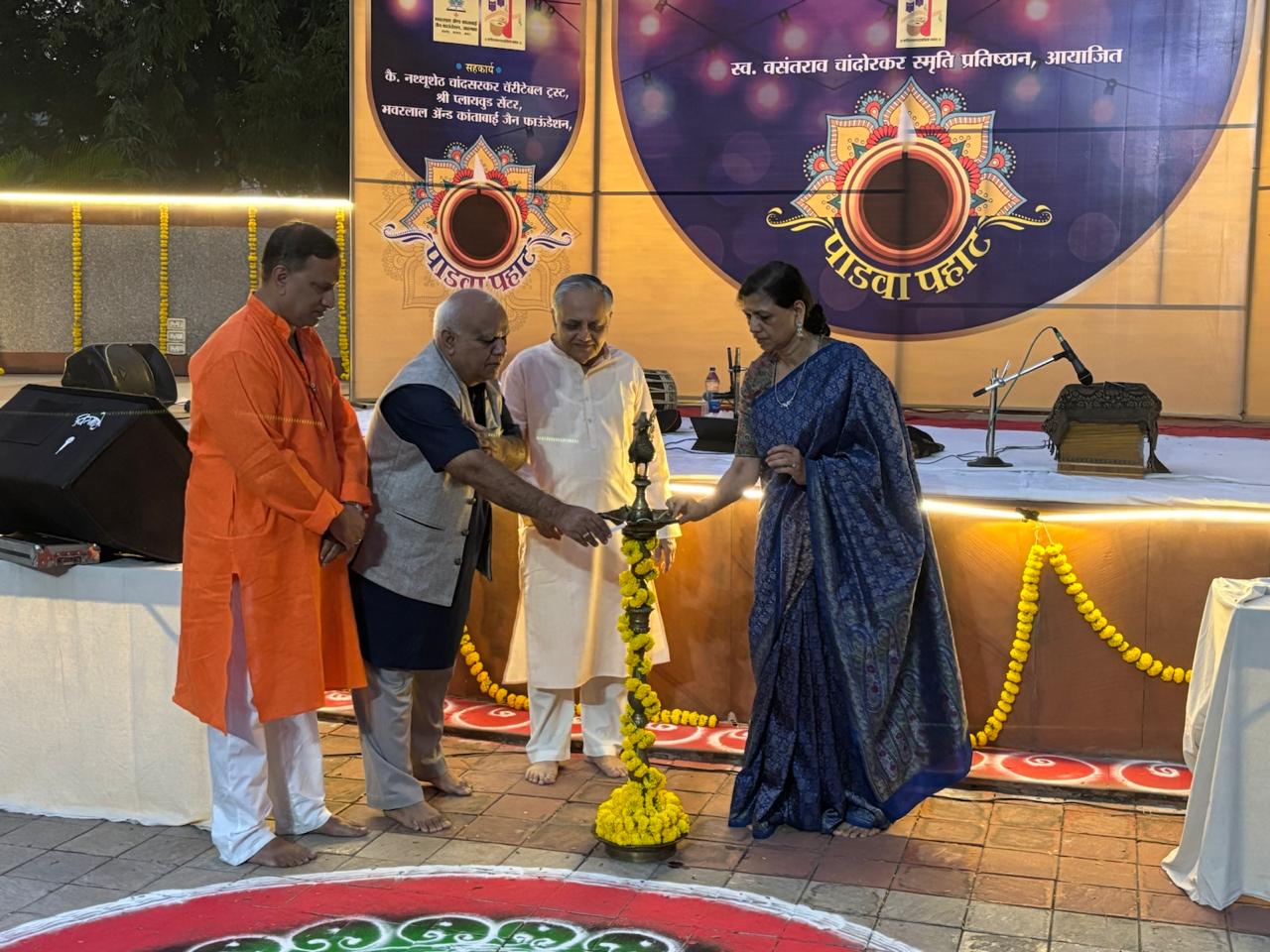 पाडवा पहाट कार्यक्रमाचे सूत्रसंचालन प्रतिष्ठानच्या उपाध्यक्ष दीपिका चांदोरकर यांनी केले तर आभार प्रदर्शन नुपूर चांदोरकर खटावकर यांनी केले दीर्घकाळ स्मरणात राहील अशा मैफिलीचे आयोजन प्रतिष्ठानच वतीने करण्यात आले.
