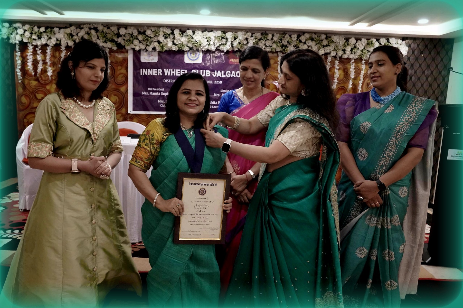 इनर व्हिल क्लब ऑफ जळगाव जिल्हा ३०३ चा आज दि.०५ रोजी हॉटेल नैवेद्य येथे पदग्रहण सोहळा निशा जैन यांच्या प्रमूख उपस्थितीत झाला. यावेळी त्या बोलत होत्या. व्यासपीठावर इनर व्हिल क्लबच्या मावळत्या अध्यक्ष डॉ. रितु कोगटा, सचिव डॉ. मयूरी पवार, नवनियुक्त अध्यक्ष उषा जैन, सचिव निशिता रंगलानी उपस्थित होत्या.