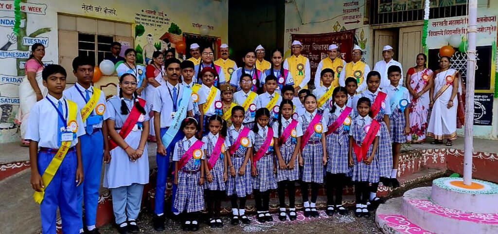 त्यानंतर इयत्ता पहिली ते दहावीच्या वर्ग मंत्री मंडळातील विद्यार्थ्यांचा स्वागत समारंभ करण्यात आला. शाळा मंत्री वैष्णवी बडगुजर इयत्ता दहावी हिने आपले मनोगत व्यक्त केले.