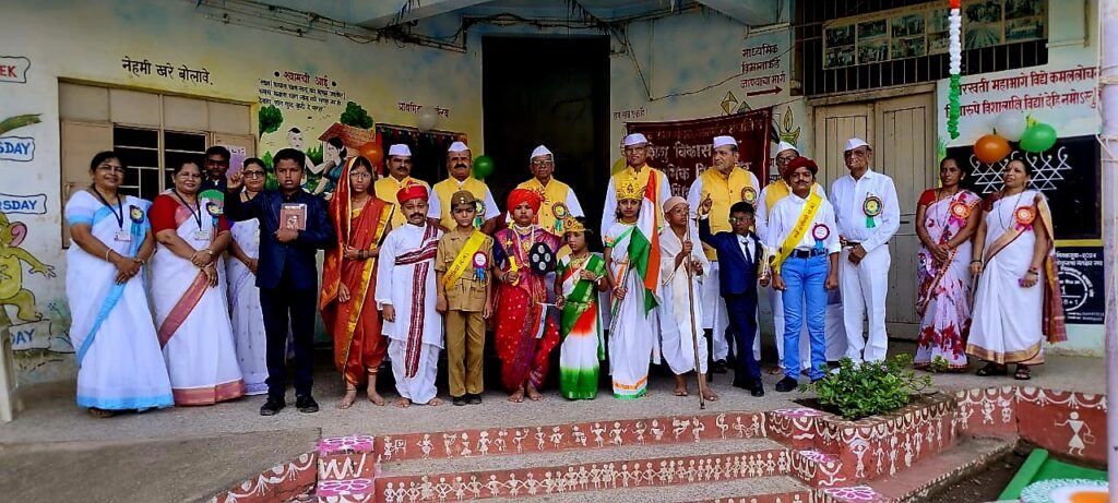यात नीता वानखेडे- राणी लक्ष्मीबाई, पूजा वाघ- भारत माता, नैतिक सोनवणे -लोकमान्य टिळक, हर्षाली पाटील -भारत माता, पियुष माळी -डॉ.बाबासाहेब आंबेडकर, चिराग वानखेडे- महात्मा गांधी, तर प्रतीक राजपूत- भगतसिंग, सिद्धी कापडे- बहिणाबाई यांच्या भूमिका करून त्यांचे विचार थोडक्यात मांडले.
