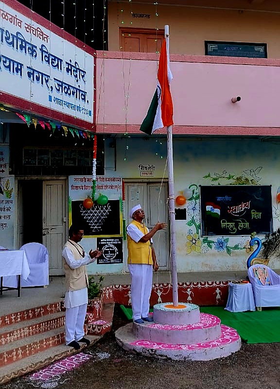 जळगाव ( वास्तव पोस्ट ) : येथील मानव सेवा विद्यालयात १५ ऑगस्ट स्वातंत्र्य दिन उत्साहात साजरा करण्यात आला. याप्रसंगी संस्थेचे अध्यक्ष डॉ.आर.एस. डाकलिया,सचिव विश्वनाथ जोशी, सदस्य डॉ. विजय सरोदे, देवेंद्र अग्रवाल, दयानंद केसवानी, कमल पारेख, माध्यमिक मुख्याध्यापिका प्रतिभा सुर्यवंशी, प्राथमिक मुख्याध्यापिका माया अंबटकर, बालवाडी मुख्याध्यापिका मुक्ता पाटील तसेच पालक सदस्या अर्चना पाटील व सोनाली चौधरी यांच्या हस्ते भारत मातेचे पूजन व दीप प्रज्वलन करण्यात आले, तर संस्थेचे अध्यक्ष डॉ. डाकलिया यांच्या हस्ते ध्वजारोहण करण्यात आले.