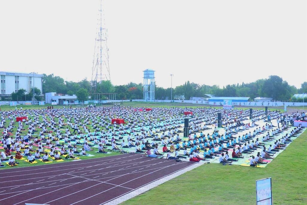 रेल्वे मैदानावर मंत्री, उच्चपदस्थ अधिकारी, शेकडो विद्यार्थी आणि नागरिकांनी केला योगा