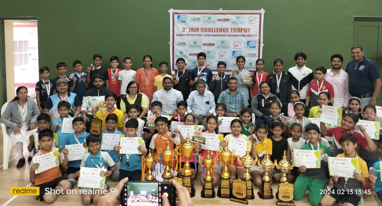 जळगाव, दि. १४ (वास्तव पोस्ट न्युज) – जैन स्पोर्ट्स अकॅडमी आयोजित व जैन इरिगेशन सिस्टीम लिमिटेड जळगाव द्वारे प्रायोजित आणि जळगाव जिल्हा बॅडमिंटन असोसिएशन द्वारे अधिकृत “जैन चैलेंज चषक” जळगाव जिल्हा आंतर शालेय (सांघिक) बॅडमिंटन स्पर्धा – २०२४. चे आयोजन दिनांक १२ ते १३ फेब्रुवारी २०२४ दरम्यान अनुभूती निवासी स्कुल येथील बॅडमिंटन हॉलमध्ये घेण्यात आल्या स्पर्धांमध्ये ११ आणि १४ वर्षाआतील वयोगटातील मुले व मुलींचे एकूण ३९ संघांनी सहभाग नोंदविला होता.