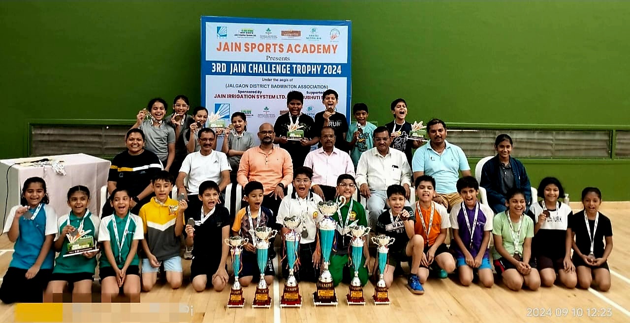 जळगाव ( वास्तव पोस्ट ) : जळगाव जिल्हा बॅडमिंटन असोसिएशन अधिकृत आणि जैन इरिगेशन सिस्टीम लिमिटेड द्वारे प्रायोजित तसेच अनुभूती स्कूल द्वारे सहप्रायोजित व जैन स्पोर्ट्स अकॅडमी द्वारे आयोजित ‘३री जैन चॅलेंज ट्रॉफी २०२४’ मधील ११ वर्षाआतील गटामधील मुलं व मुलींच्या बॅडमिंटन स्पर्धा यशस्वीरित्या पार पडल्या.