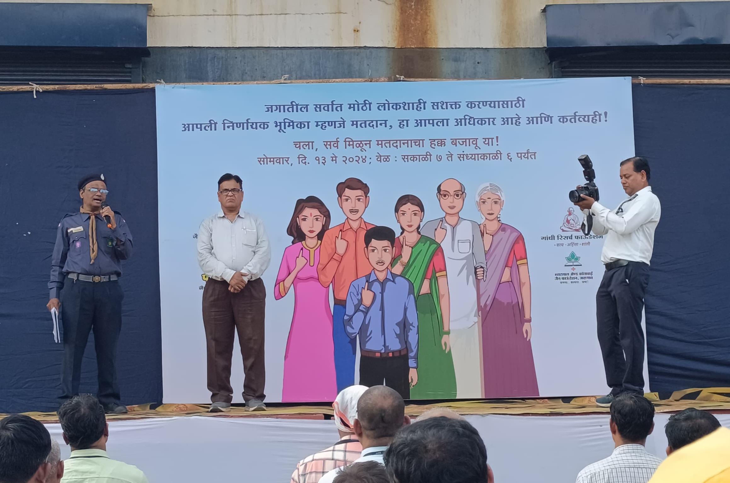 त्यानंतर जळगाव जिल्हा लोकसभा निवडणूक २०२४ चे आयकॉन मदन लाठी यांनी मतदानाचे महत्त्व थोडक्यात पटवून दिले आणि १३ मे रोजी जास्तीत जास्त मतदान करुन सोबत घरातील सदस्य, आजुबाजुचे शेजारी – पाजारी व नातेवाईकांना विनंती करून जसे आपण उत्सव साजरे करतो त्या प्रमाणे १३ मे २०२४ रोजी हा उत्सव मोठ्या अभिमानाने साजरा करावा ही विनंती करून उपस्थितांना मतदानाची शपथ दिली.