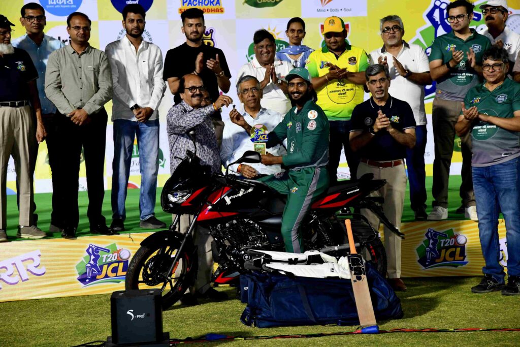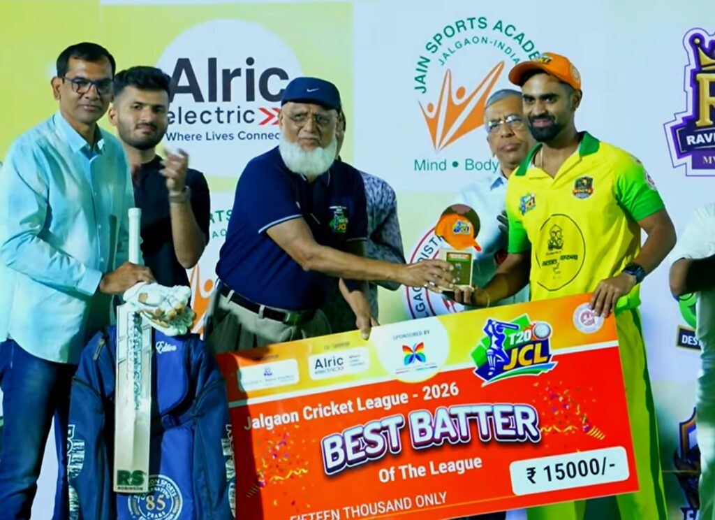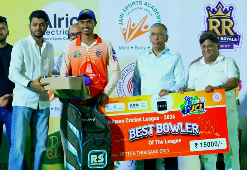 जळगावचा ओम भोसले ‘बेस्ट फलंदाज’ तर जामनेरचा रवि पाटील ‘बेस्ट गोलंदाज’ ठरला. पुर्वेश चौधरी याला अंतिम सामन्याचा सामनावीर म्हणून गौरवण्यात आले.