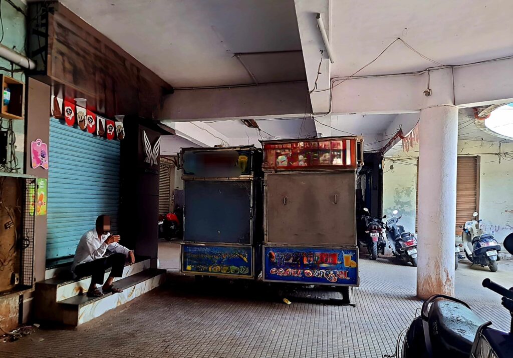 महानगरपालिका इमारतीच्या तळमजल्यावर असलेल्या गोलाणी मार्केटच्या गाळ्यासमोरच पार्किंगच्या जागेत एका शीतपेय व्यावसायिकाने चक्क दोन मोठ्या हातगाड्या उभ्या करून सार्वजनिक जागा अडवली आहे. विशेष म्हणजे, या व्यावसायिकाचा गाळ्यात व्यवसाय सुरु असतानाही, मार्केटमध्ये येणारे ग्राहक आणि कर्मचारी ज्या अंतर्गत रस्त्यावर आपल्या दुचाकी लावतात तेथे या हातगाड्या लावण्यात आल्या आहेत.