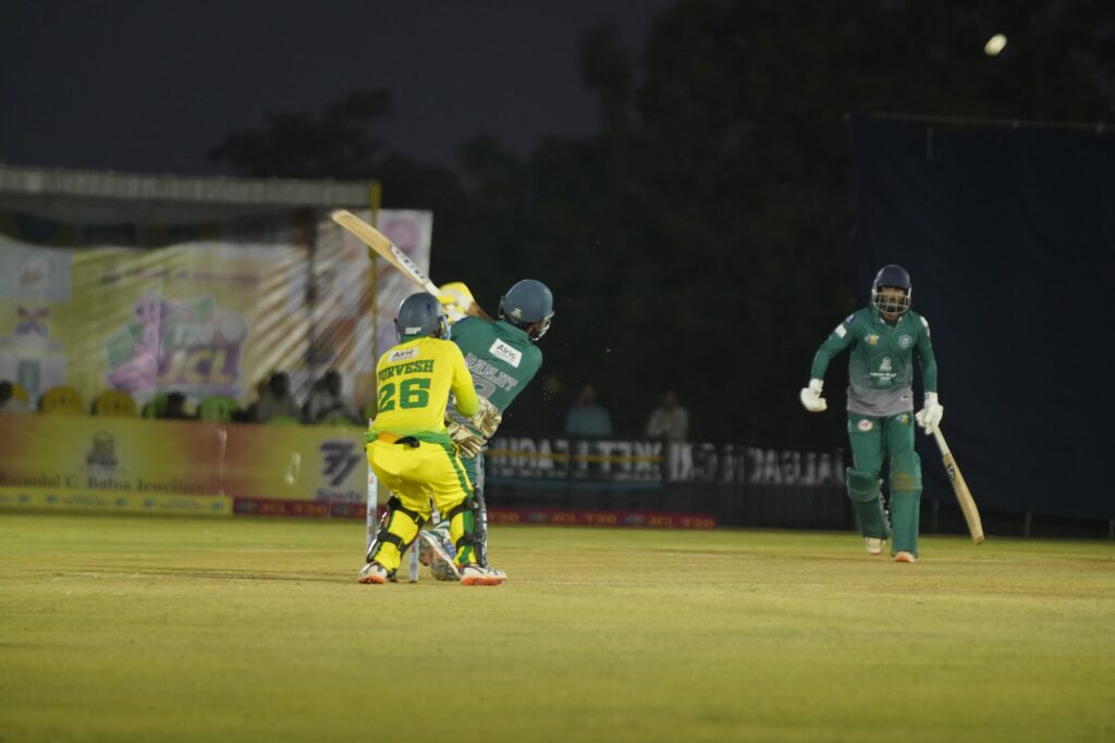 २४३ धावांचे लक्ष्य टी-२० क्रिकेटमध्ये अशक्यप्राय मानले जाते, पण अमळनेरच्या फलंदाजांनी मैदानात उतरल्यापासूनच धारदार प्रतिकार केला. मानव ट्रिबरेवालने २९ चेंडूंत ६४ धावा (६ षटकार, ४ चौकार) ठोकून आक्रमक सुरुवात करून दिली. त्यानंतर रणजीत निकम (७६ धावा, २८ चेंडू) आणि कर्णधार शुभम शर्मा (६५ धावा, ३० चेंडू) यांनी जळगावच्या गोलंदाजांना मैदानावर चोहोबाजूंनी चोपले. या दोघांच्या वेगवान भागीदारीमुळे अमळनेरने १.३ षटके राखून विजयावर शिक्कामोर्तब केला. रणजीत निकमला त्याच्या झंझावाती खेळीसाठी ‘सामनावीर’ पुरस्काराने गौरवण्यात आले.