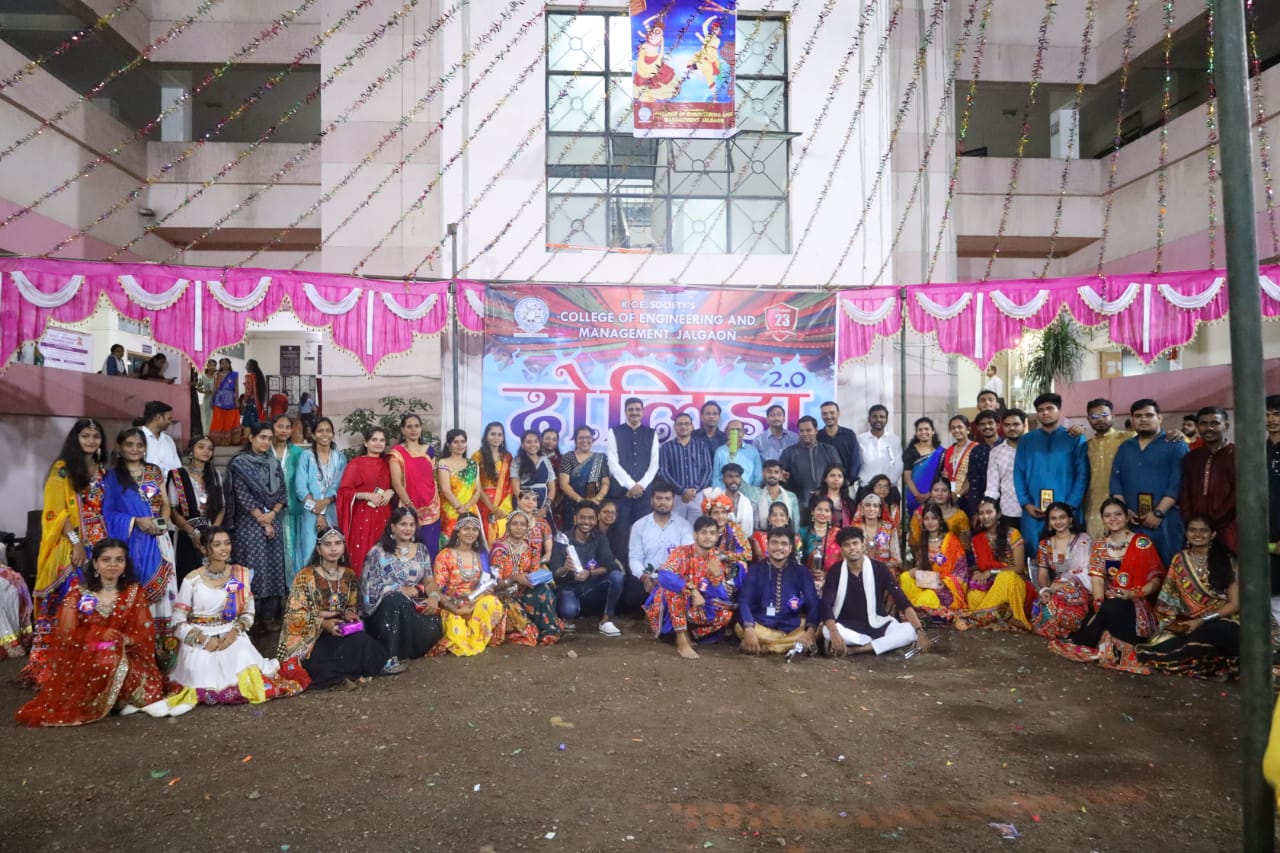 जळगाव ( वास्तव पोस्ट ) : के.सी.ई. इंजिनीरिंग अँड मॅनेजमेंट महाविद्यालयांत नवरात्रोत्सव निमित्त ढोलीडा २.० चे आयोजन करण्यात आले होते. दि ७ ऑक्टो २०२४ रोजी महाविद्यालयांत संद्याकाळी प्राचार्य डॉ.संजय सुगंधी यांच्या हस्ते देवीची आरती करून कार्यक्रमाला सुरुवात करण्यात आली. या कार्यक्रमाचा मुख्य उद्देश हा सर्वांगीण विकास, ओळख परिचय, व लुप्त गुणांना संधी देणे होय.