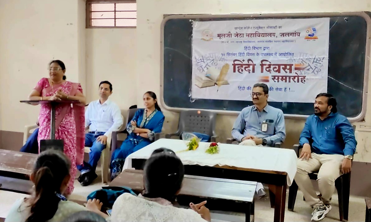व्यासपीठावर हिंदी विभाग प्रमुख डॉ. रोशनी पवार, डॉ. मनोज महाजन, प्रा.विनोद अहिरे हे यावेळी उपस्थित होते. या कार्यक्रमाचे प्रास्ताविक हिंदी विभागाचे प्राध्यापक विजय लोहार यांनी केले. सूत्र संचालन प्रा.उज्वला पाटील यांनी केले. यावेळी मोठ्या संख्येने विद्यार्थी या कार्यक्रमासाठी उपस्थित होते.