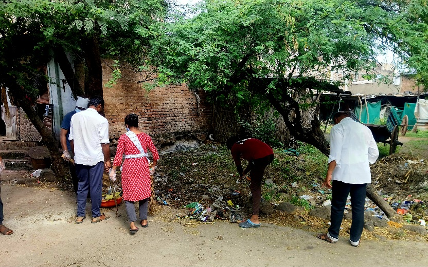 गांधी जयंती सप्ताहानिमित्त शिरसोली प्र.न येथे सामूहिक स्वच्छता अभियान