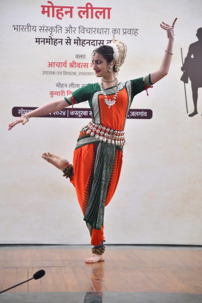 ओडिसा नृत्यशैलीतून मोहन लिलांची अनोखी प्रस्तूती नृत्यांगना विष्णुप्रिया गोस्वामी यांनी केली. ओडिसी नृत्यातून श्रीकृष्णाच्या बाललिला, गोकूळ, वृदांवनातील विविध दाखल्यांवर नृत्याभिनय सादरीकरण केले. यात ‘केळ छंद जाने लो नंद राजा राम लिया..’ या उडिया भाषेतील वनमाली रचीत रचनेवर ओडिसी नृत्य सादर केले. ही राग केदारगौड ताल गुरू सात मात्रमध्ये सादर केले. यानंतर ‘राधाराणी सांग नावे मुरलीपारो’ या गीतावर मनमोहक नृत्य केले. शेवटी ‘वैष्णव जन तो है पिर..’ या महात्मा गांधी प्रिय भजन वरूण नेवे याने गायले. त्यावर विष्णुप्रिया गोस्वामी हिने ओडिसी नृत्य प्रस्तूत केले.