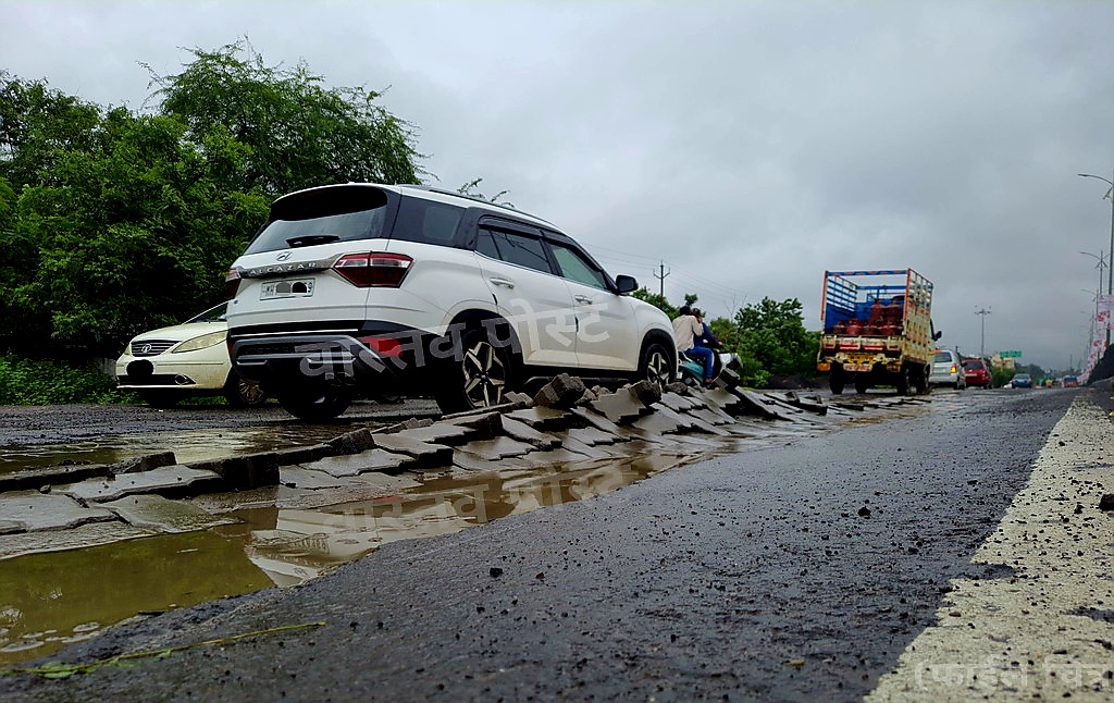 सदर चित्रिकरणात संबंधित विभागाच्या भोंगळ कामाची प्रचिती येते. याठिकाणी काल दुपारनंतर उखडलेले सर्वच पेव्हर ब्लॉक्स संध्याकाळी उचलून महामार्गाच्या मध्यभागी रचून ठेवण्यात आले आहे. आकाशावाणी चौकामध्येही निघालेले पेव्हर ब्लॉक्स सर्कलवर ठेवण्यात आले आहेत.