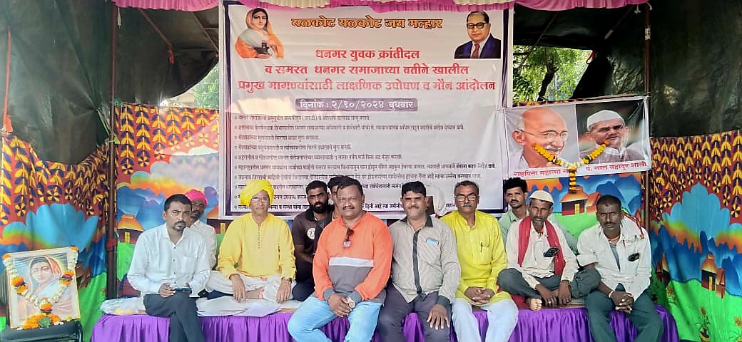 जळगाव ( वास्तव पोस्ट ) : धनगर समाजाच्या प्रलंबित मांगण्यासाठी आज दि.२ ऑक्टोबर गांधी जयंती दिनी धनगर युवक क्रांती दलाच्या वतीने शिवतीर्थ मैदान येथे एक दिवसीय लाक्षणिक उपोषण तसेच एक तास मौन आंदोलन करण्यात आले. धनगर समाजाला अनुसूचित जमातीतुन एस टी आरक्षण आतापर्यत लागू केल गेले नसल्याने गेल्या ७० वर्षांपासून धनगर समाजावर अन्याय दुर करून अनुसूचित जमातीच्या सवलती लागू कराव्या, या प्रमुख मांगणीसह विविध मांगण्यासाठी यावेळी धनगर युवक क्रांती दलाच्या वतीने निवासी उपजिल्हाधिकारी गजेंद्र पाटोळे यांना निवेदन सादर करण्यात आले.