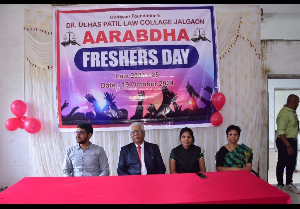 जळगाव ( वास्तव पोस्ट ) : डॉ.उल्हास पाटील विधी महाविद्यालयात आज दि.१९ रोजी प्रथम वर्ष एल.एल.बी. व प्रथम वर्ष बी.ए. एल.एल.बी. या विद्यार्थ्यांसाठी “Fresher’s Party व Induction Programme” चे आयोजन करण्यात आले होते. या कार्यक्रमासाठी शहरातील प्रसिद्ध विधीज्ञ ॲडवोकेट जी.एम. पाटील यांना आमंत्रित करण्यात आले होते.