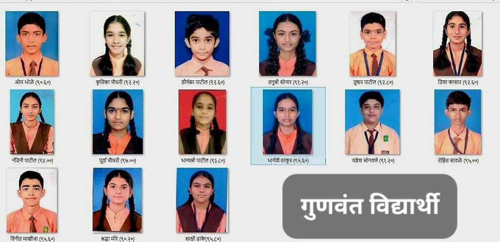 विद्यालयातून प्रथम – रोहन संदीप पाटील ९९%, द्वितीय – अनुश्री सुनील निंभोरे ९८% तर तृतीय – मयंक प्रशांत वाणी ९७.४०% या विद्यार्थ्यांनी घवघवीत यश संपादन केले.