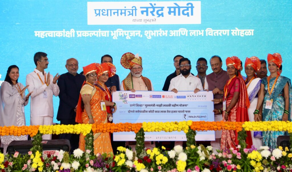 ‘मुख्यमंत्री-माझी लाडकी बहीण’ योजनेच्या लाभार्थ्यांचा सत्कार यावेळी करण्यात आला. राज्यपाल सी.पी. राधाकृष्णन, मुख्यमंत्री एकनाथ शिंदे, उपमुख्यमंत्री देवेंद्र फडणवीस, उपमुख्यमंत्री अजित पवार, पालकमंत्री शंभूराज देसाई, सार्वजानिक बांधकाम मंत्री रविंद्र चव्हाण, महिला व बालविकास मंत्री आदिती तटकरे, खासदार डॉ.श्रीकांत शिंदे, नरेश म्हस्के, सुरेश म्हात्रे, सिडको महामंडळाचे अध्यक्ष संजय शिरसाठ आदी मान्यवर उपस्थित होते.