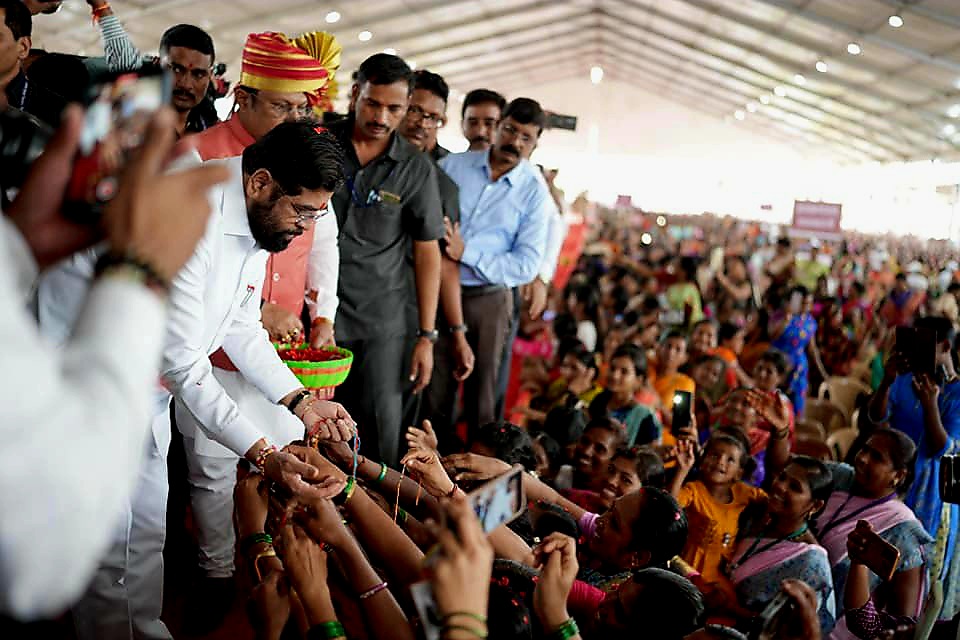तत्पुर्वी कोल्हापूरात मुख्यमंत्री यांचे जंगी स्वागत करण्यात आले. महिला भगिनींनी गुलाबपुष्प उधळून स्वागत करत मोठ्या विश्वासाने मुख्यमंत्री यांना राख्याही बांधल्या.