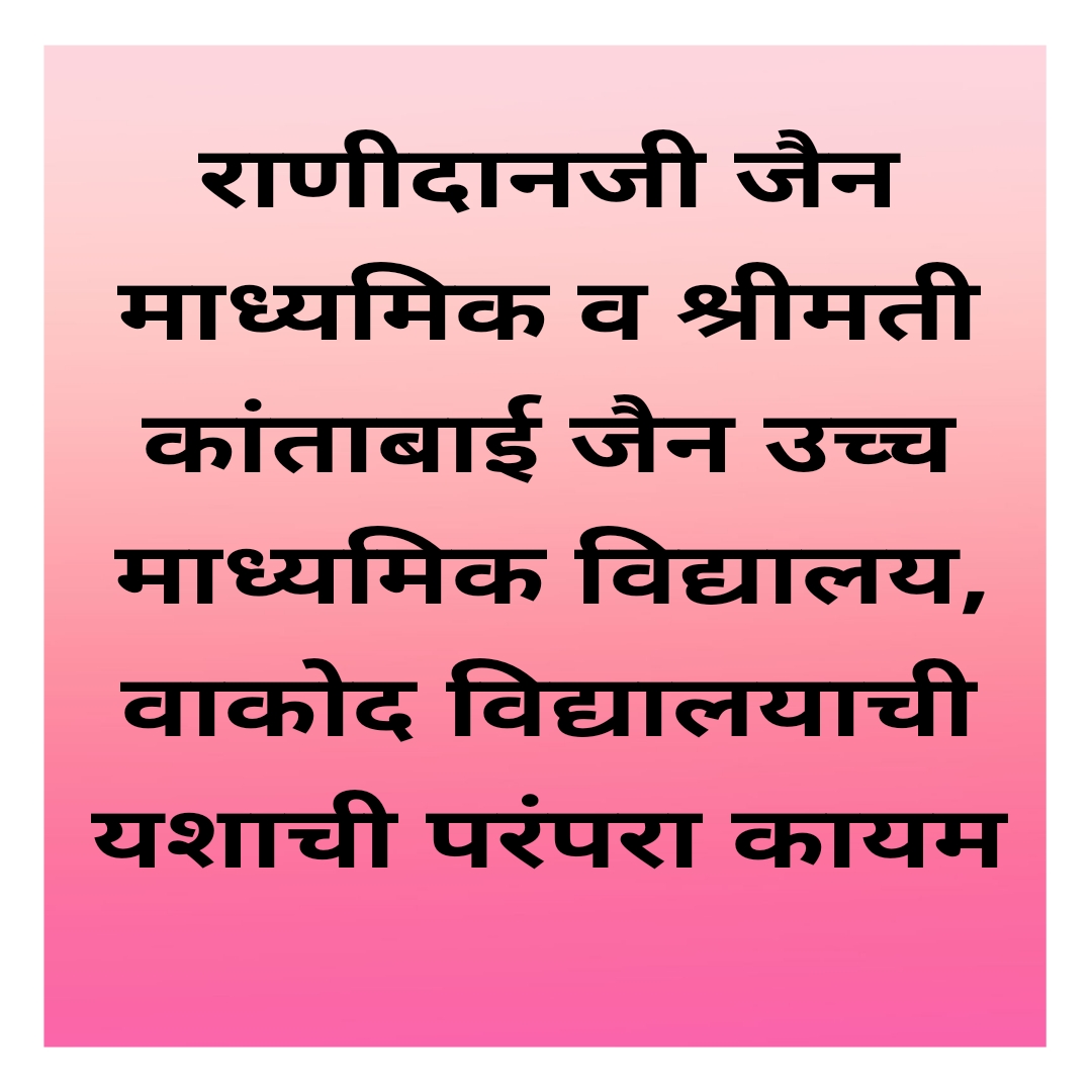 जळगाव ( वास्तव पोस्ट न्यूज ) :शेंदुर्णी सेकंडरी एज्युकेशन को-ऑपरेटिव्ह सोसायटी लिमिटेड शेंदुर्णी संचालित, राणीदानजी जैन माध्यमिक व श्रीमती कांताबाई जैन उच्च माध्यमिक विद्यालयाचा इयत्ता १२ वीचा निकाल ९८.१४ टक्के लागला आहे. विद्यालयातून शिवानी ज्ञानेश्वर उबाळे आणि श्रद्धा सदाशिव पाटील या दोन्ही विद्यार्थिनींना ७९.६७ टक्के गुण मिळाले,