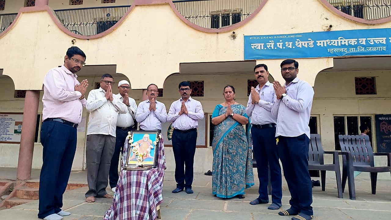 वास्तव पोस्ट l म्हसावद : स्वातंत्र्य सैनिक पं.ध. थेपडे माध्यमिक व उच्च माध्यमिक विद्यालययात राष्ट्रसंत गाडगे महाराज यांची जयंती मोठ्या उत्साहात साजरी करण्यात आली. ‘मानवता हीच खरी ईश्वर सेवा’ हा संदेश देणाऱ्या या थोर संताच्या विचारांचा जागर याप्रसंगी करण्यात आला. कार्यक्रमाच्या सुरुवातीला गाडगे महाराज यांच्या प्रतिमेचे पूजन विद्यालयाचे मुख्याध्यापक जी.डी. बच्छाव, उप मुख्याध्यापक एस.के. भंगाळे आणि पर्यवेक्षक के.पी. पाटील यांच्या हस्ते करण्यात आले.
