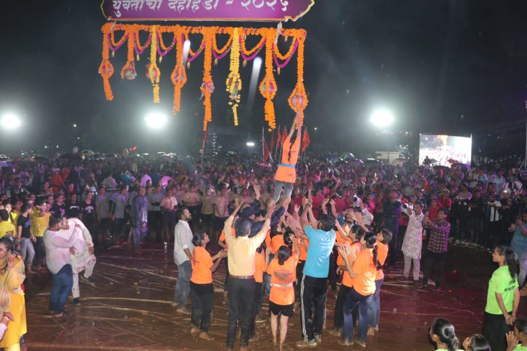 मान्यवरांच्या हस्ते सुरवातीला दहिहंडी पूजन करण्यात आले. दरम्यान दहिहंडी फोडणाऱ्या गोपिकांच्या पथकाला चषकाने सन्मानित करण्यात आले. यासोबतच इतर सहभागी झालेल्या संघानासुद्धा गौरविण्यात आले. यावेळी छाया बोरसे, मंजुषा भिडे, कामिनी धांडे, छाया चिरमाडे या परीक्षकांनी परिक्षक म्हणून काम पाहिले.