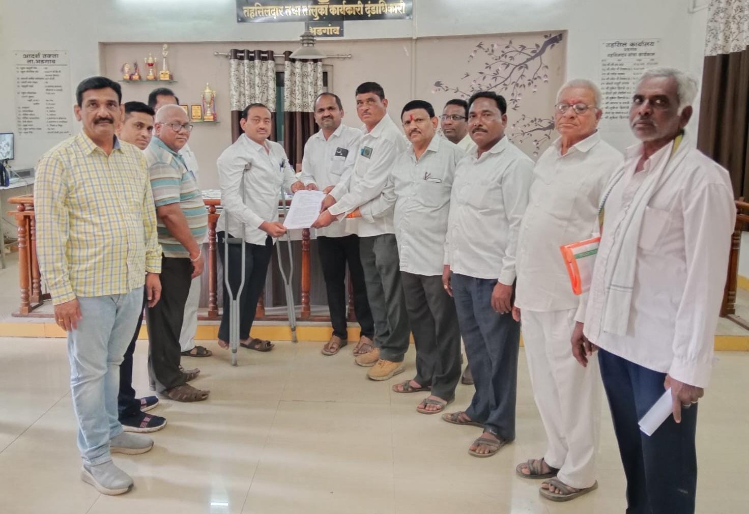 महाराष्ट्र शासनाने मराठा समाजाला मराठा आरक्षणाअंतर्गत सगेसोयरे या धरतीवर मराठा समाजाला कुणबी प्रमाणपत्र देण्याचे अध्यादेशानुसार आश्वासित केले आहे. यामुळे ओबीसीमध्ये भीतीचे वातावरण निर्माण झाले असून आपला हा निर्णय मूळ ओबीसींवर अन्याय करणारा आहे ,अशा व विविध हरकतीचें निवेदन गुरुवारी आमदार किशोर पाटील व भडगाव तहसीलदार मुकेश हिवाळे यांना भडगाव तालुका समता परिषद व ओबीसी बांधवांतर्फे देण्यात आले. या वेळी समता परिषद तालुका अध्यक्ष भानुदास महाजन, साहेबराव महाजन, शिवदास महाजन, सुनील महाजन, नितिन महाजन, दिनेश पाटील, संजय पवार, देवीदास महाजन, अशोक परदेशी, बापू सोनवणे, सोपान चौधरी आदी उपस्थित होते.