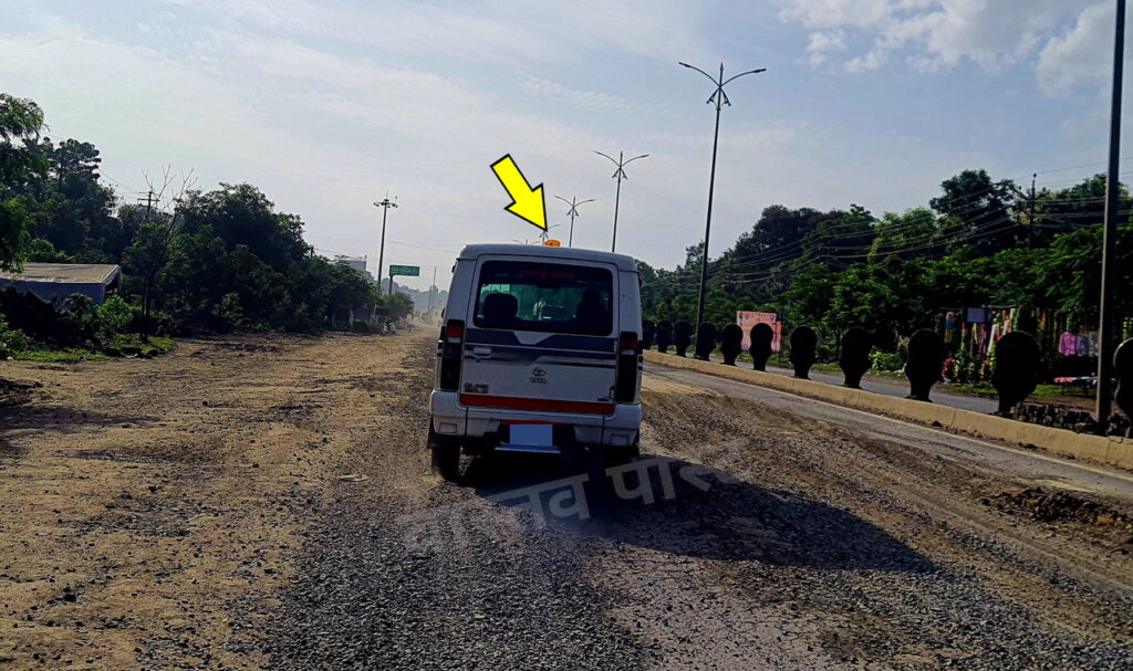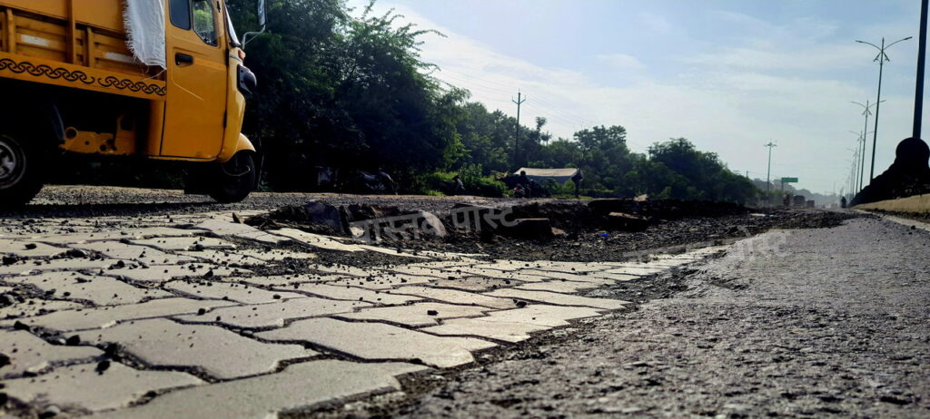 आज सकाळी सदर स्पॉटवर गेलो असता, महामार्गावर मधोमध कोरडा गारा आणि त्यात पेव्हर ब्लॉक्स चा ढिग जमा झाल्याचे भयानक दृश्य दिसून आले. विशेष म्हणजे तेवढा रस्ता वाहतुकीसाठी बंद देखिल केलेला नव्हता. तसेच आज सकाळी ८:३० वाजेपर्यंत तरी त्या ठिकाणी वाहन चालकांसाठी रस्त्याच्या आजबाजुला कोठेच धोक्याची सूचना असलेला फलक किंवा सावधानतेसाठी इतर काहीही फलक लावलेले नव्हते. शिवकॉलनीकडून येणार वाहन भरधाव वेगाने येऊन अचानक आपला वेग कमी करत होते.