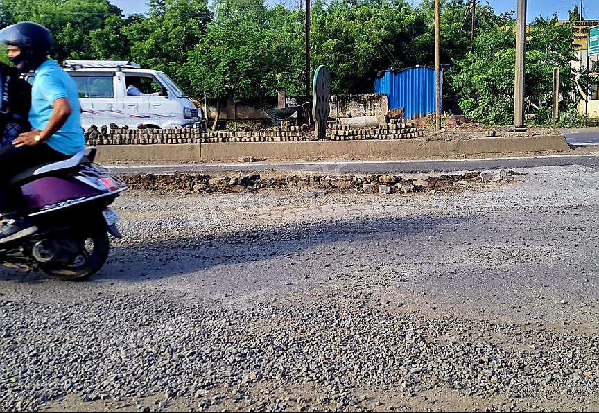 तर दुचाकी चालकांना देखील मोठी तारेवरची कसरत याठिकाणी करावी लागत आहे. कारण डाव्या बाजूने सर्वत्र खडी पसरली असुन त्यावर मोटरसायकल घरसण्याची दाट शक्यता आहे. अशा या गलथान कारभारामुळे सहाजिकच वरील प्रश्न मनात निर्माण होतात.