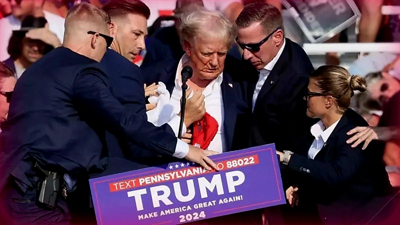 पेन्सिल्वेनिया राज्यातील बटलर शहरात डोनाल्ड ट्रम्प एका प्रचारसभेत भाषण करत असताना अचानक गोळीबाराचा आवाज झाला. यात ट्रम्प यांच्या उजव्या कानाच्या वरच्या भागाला गोळी छेदून गेली. ट्रम्प यांनी क्षणाचाही विलंब न करता कानाला हात लावत खाली झुकले आणि काही क्षणातच सिक्रेट सर्व्हिसच्या जवानांनी त्यांना स्टेजवरून खाली उतरवत, घटनास्थळापासून बाजूला नेले.