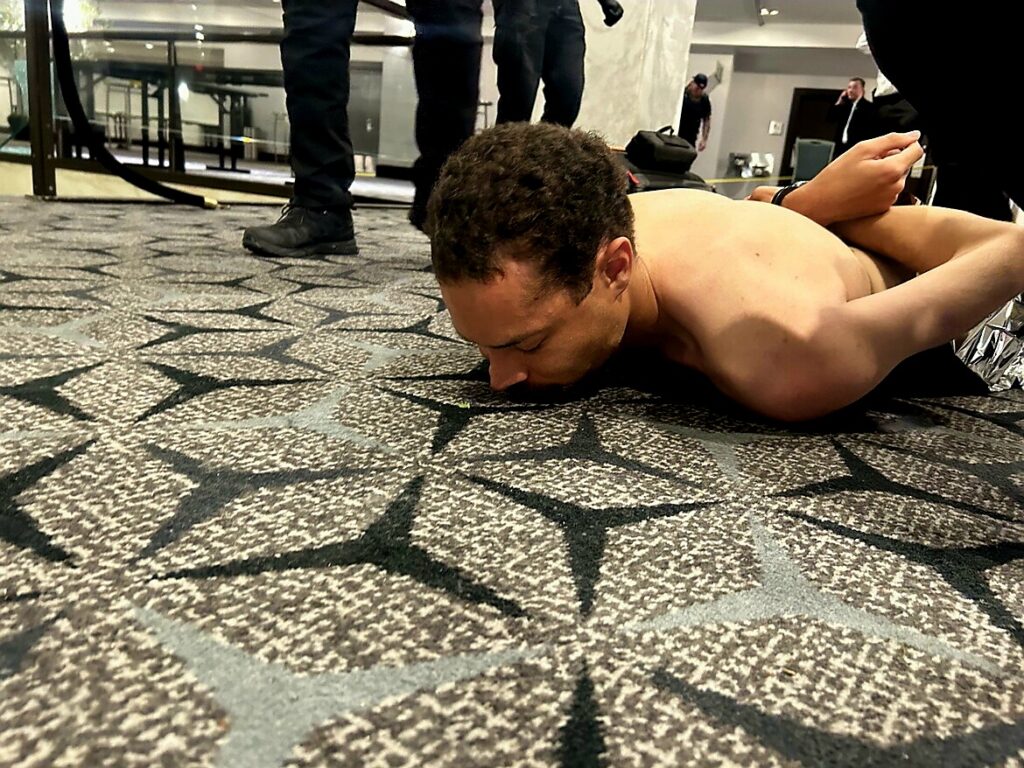 मेट्रोपॉलिटन पोलिस विभागाचे अंतरिम प्रमुख जेफ्री कॅरोल यांनी पत्रकार परिषदेत सांगितलं, “संदिग्ध व्यक्तीकडे शॉटगन, हँडगन आणि काही चाकू होते. त्याला गोळी लागली नाही. प्राथमिक चौकशीत असं दिसतंय की तो एकटाच होता. आता जनतेसाठी कोणताही धोका नाही.” पोलिसांनी संशयिताची ओळख ३१ वर्षीय कोल टोमस एलन अशी केली आहे. तो कॅलिफोर्नियातील टॉरेंस येथील रहिवासी आहे. घटनेच्या व्हिडिओ फुटेजमध्ये कार्यक्रम सुरू असताना अचानक गोंधळ उडाल्याचं, लोकांना मोबाइलवर रेकॉर्डिंग करताना आणि सुरक्षा रक्षकांना तातडीने कारवाई करताना दिसतं आहे.