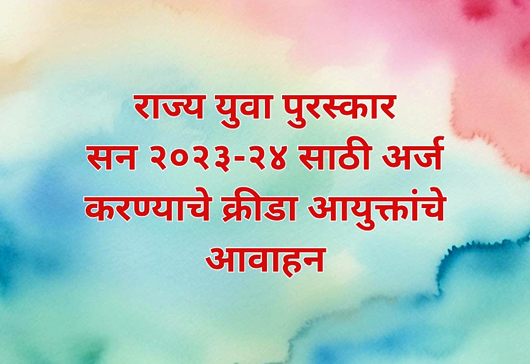 राज्य युवा पुरस्कारासाठी युवक अथवा युवा विकासाचे कार्य करणा-या संस्था यांनी गत तीन वर्षामध्ये केलेल्या कामगिरीचे मुल्यांकन विचारात घेण्यात येणार असून राज्य युवा पुरस्कार सन २०२३-२४ साठी अर्ज दि१५ फेब्रुवारी २०२५ पर्यंत जिल्हा क्रीडा अधिकारी कार्यालयात सादर करणे आवश्यक राहणार आहे.